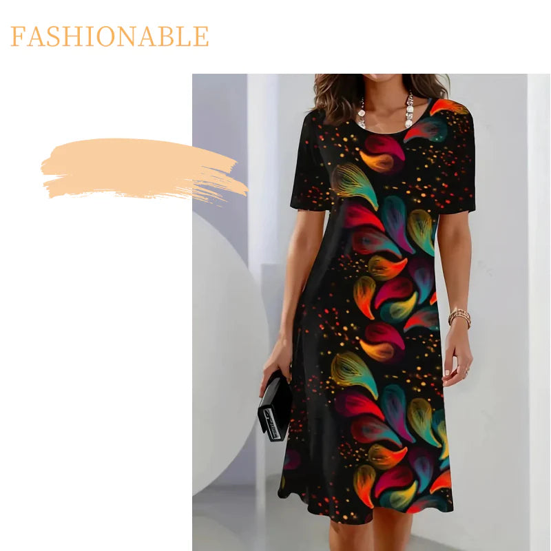 Ova haljina ima živahan, ali uravnotežen print koji dodaje osobnost vašoj svakodnevnoj garderobi. Uzorak preko cijele površine dodaje vizualni interes, što je čini savršenom za ležerne večernje izlaske, vikend kupovinu ili ležerna druženja.