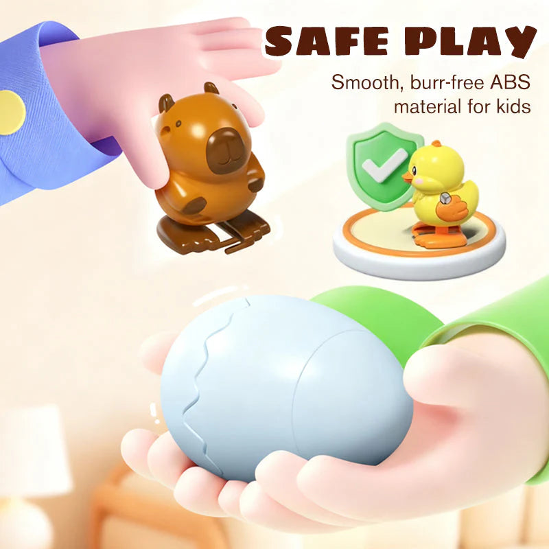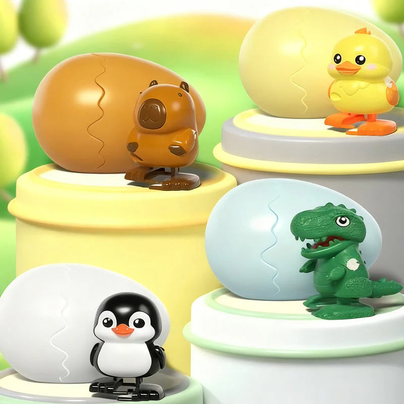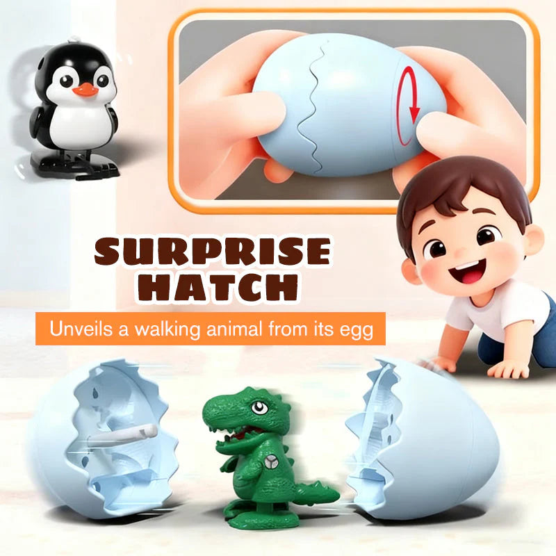 MEHANIZAM IZLEGANJA IZNENAĐENJA: Sudjelujte u impresivnom iskustvu igre. Okrenite vrh jajeta, spustite ga i ljuska će se u trenutku automatski otvoriti. Ovaj pokret otkriva šarmantnu životinju na navijanje, spremnu za izlazak. Ovaj interaktivni proces ispunjava dijete iščekivanjem i radošću, stvarajući novo, uzbudljivo vrijeme za igru.