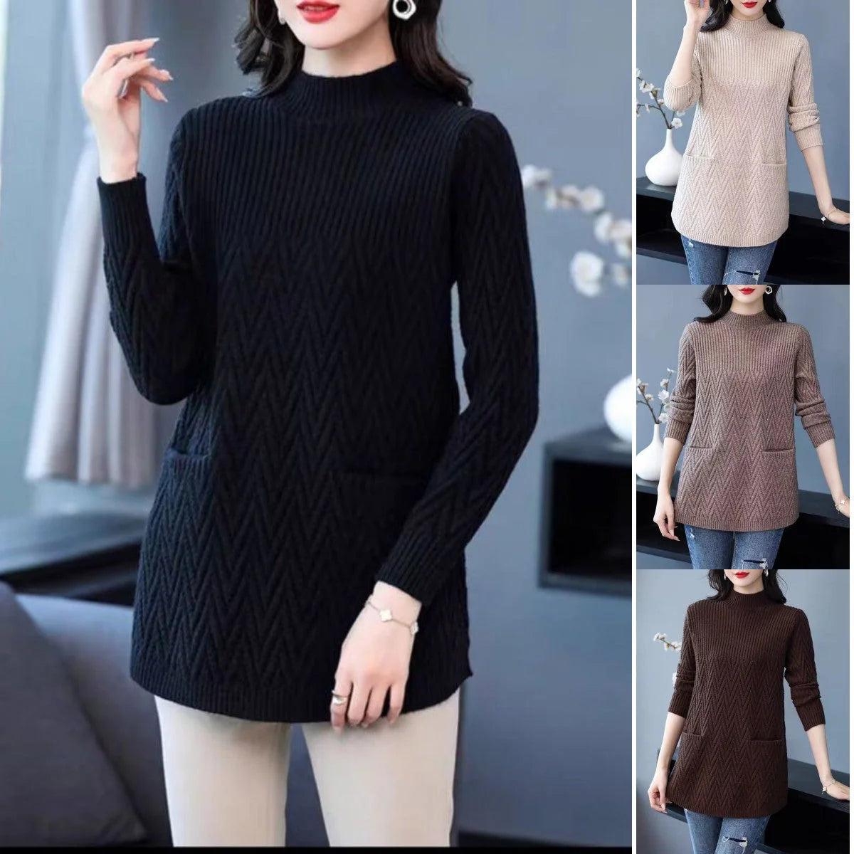 1*Ženski pulover s dolčevitom srednje duljine