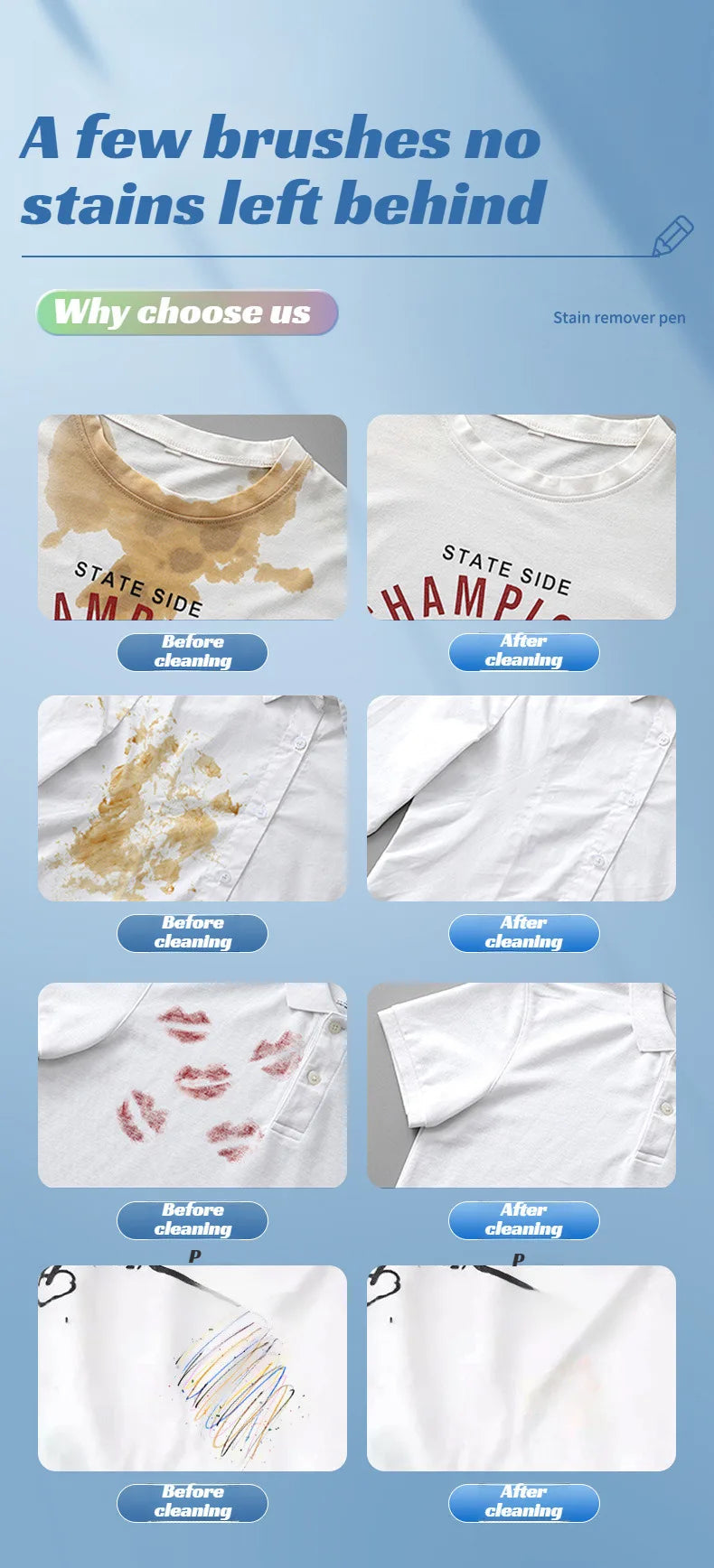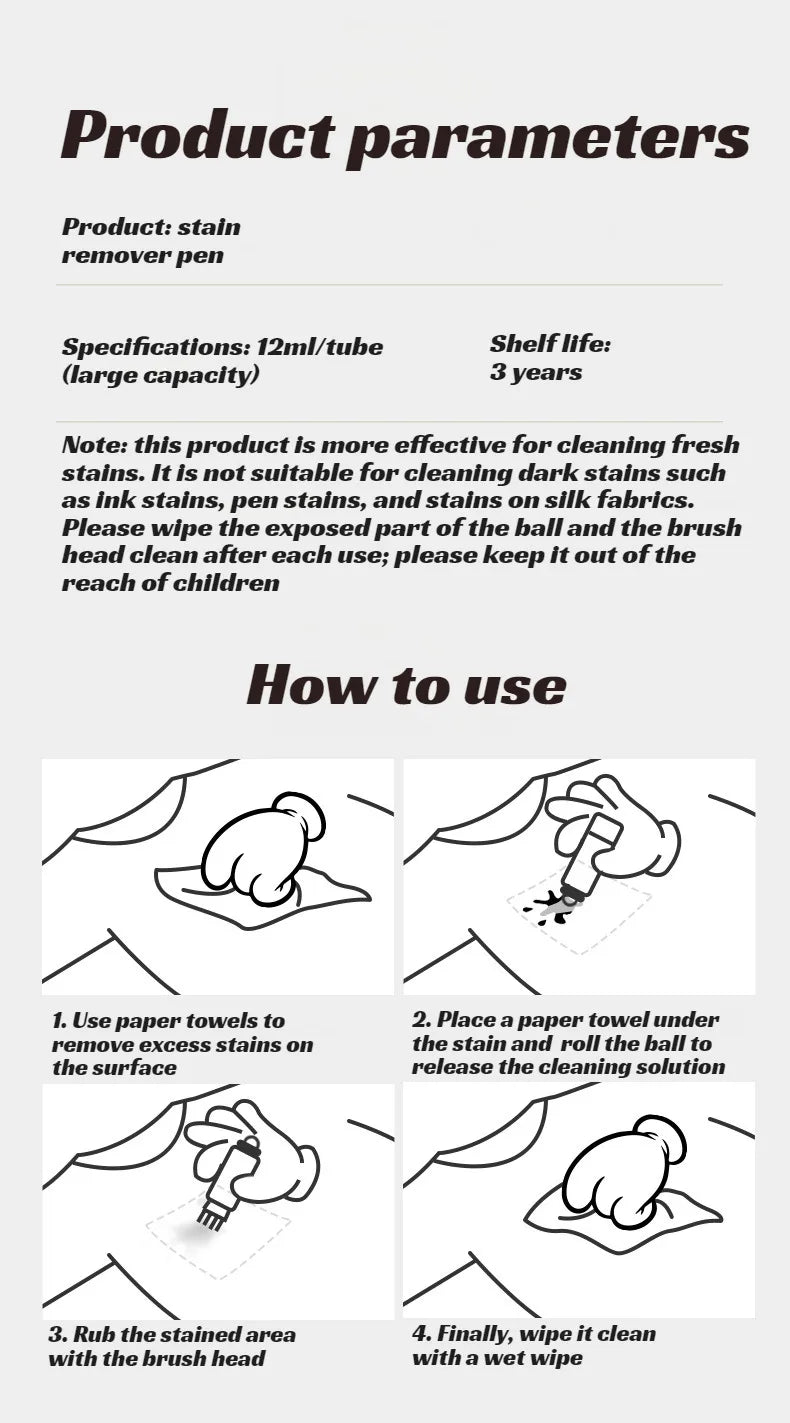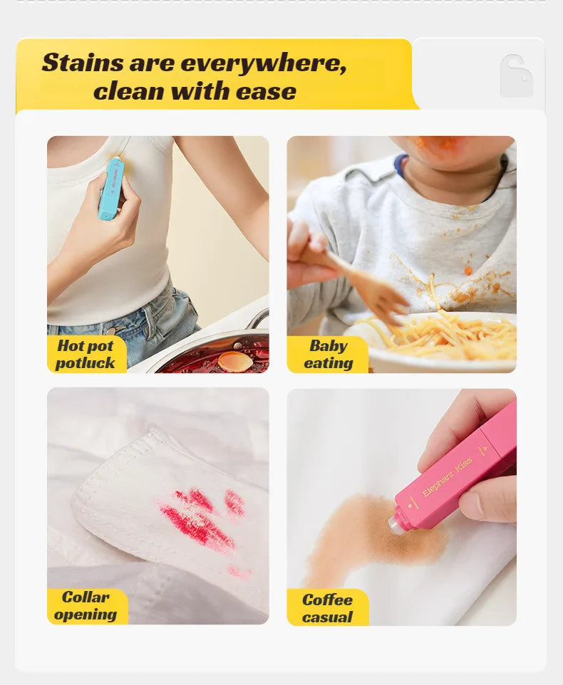 Oznake za vašu mobilnu aplikaciju: Prolivena kava? Umak po košulji? Ova prijenosna olovka za uklanjanje mrlja briše mrlje u trenu, bilo kada i bilo gdje! ? Trenutačno uklanja svježe mrlje ? Sigurno za sve vrste tkanina ? Nije potrebna voda ni ispiranje ? Džepne veličine i pogodno za putovanja
